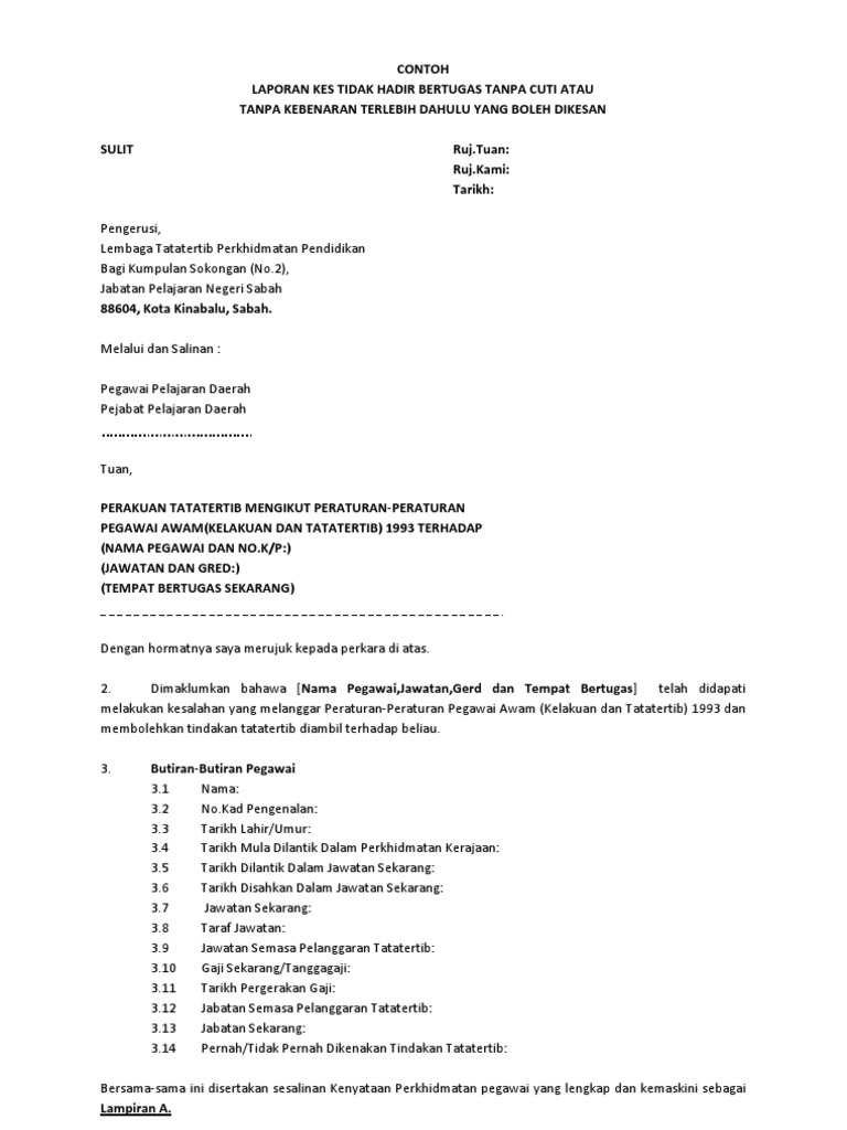 Contoh Laporan Kes Tidak Hadir Bertugas Dpt Dikesan Pdf
